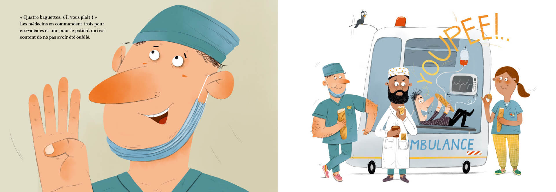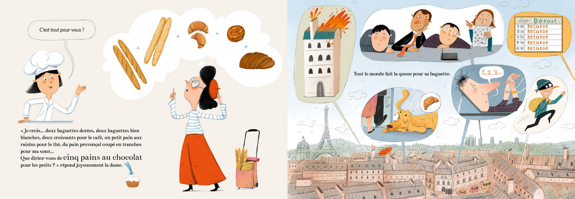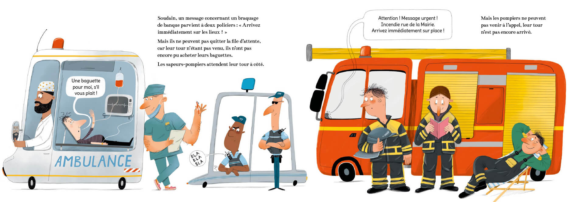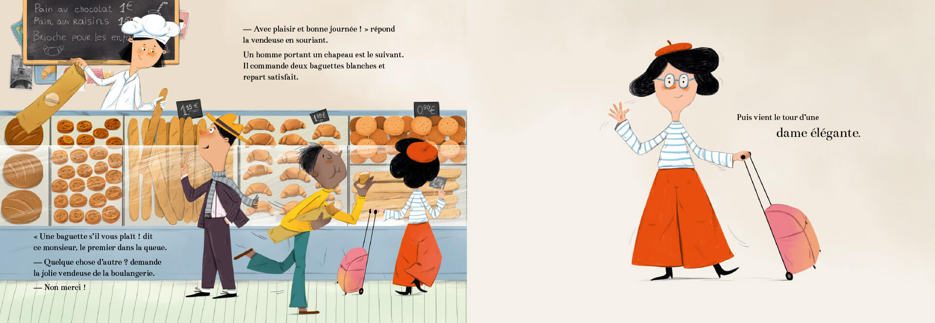 In the morning, the bakery is full of people. The queue is long, and the town comes to a standstill. Everyone is waiting for their baguette for breakfast and, of course, lunch. Some are in a hurry, others not, but all are patiently waiting their turn. Of all the emergencies, this is the most urgent: the letter carrier, the firefighters, the police, the President, and an elderly lady- all of them have the same morning problem. A funny and easy story about baguettes for children that will make every baguette tastier and crunchier. Bon appétit!